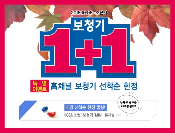 ‘국내 보청기 전문 기업’ 딜라이트 보청기가 10월을 맞아 고채널 보청기를 1+1으로 판매하는 특별 이벤트를 실시한다고 밝혔다.
