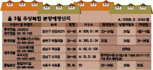 업체별로는 대우건설이 강남권 2곳에서 분양하고 강북에서는 롯데건설과 공동으로 시티파크를 분양한다.현대건설은 성북구 하월곡동에서 ‘미아현대홈타운스위트’를,동일토건은 서초구 서초동에서 55가구를 각각 분양한다.