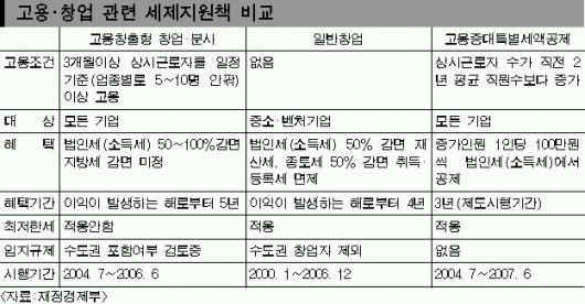 최근 잇따라 쏟아져 나온 고용·창업 관련 세제지원책 가운데 어떤 것이 가장 유리할까.지금까지 드러난 골격으로는 이헌재 부총리 겸 재정경제부 장관의 ‘야심작’인 고용창출형 창업·분사 지원책이 가장 풍성해 보인다.