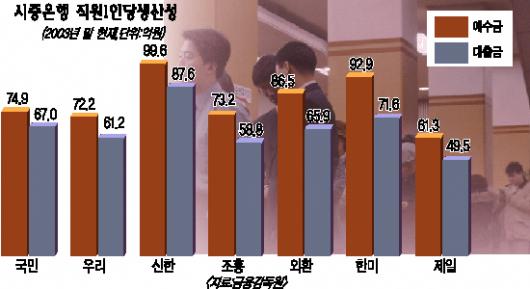 무분별한 대출이 문제가 됐던 지난해 SK글로벌(현 SK네트웍스)이나 LG카드 사태도 기업의 이름값에 의존하는 대출관행이 여전함을 보여준다.은행들이 강조하는 수수료 수입 확대도 아직 구두선에 그치고 있다.지난해 전체 영업이익에서 수수료가 차지하는 비중은 하나은행 등 극소수를 빼고는 대부분 은행에서 더 줄었다.반대로 이자수입의 비중은 더 늘었다.