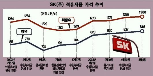 정유사들은 지난 6일 정부의 석유수입부과금 및 관세인하 조치에 따라 휘발유 등 석유제품 가격을 내린 지 1주일도 안 돼 ℓ당 5∼11원 올렸다.지난달 29일 석유제품 가격을 ℓ당 4∼8원 올렸다가 하루만인 30일 ℓ당 12원씩 내린 뒤 다시 1주일만에 인상 방침을 밝힌 것이다.이에 대해 SK㈜ 관계자는 “국제유가 상승분을 반영하느라 석유제품 가격을 인상했다가 정부의 부과금 및 관세인하 조치에 따라 내렸지만 이후 국제유가가 연일 최고가를 경신하는 등 상승세를 지속해 다시 올릴 수밖에 없었다.”고 해명했다.