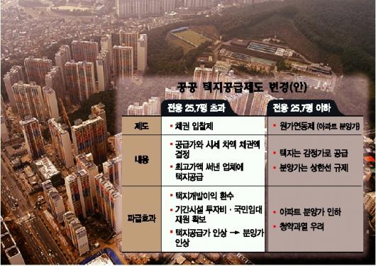 하반기부터 택지지구 아파트 분양 가격이 25.7평 초과 중대형은 오르고 소형 아파트는 떨어지는 등 분양가 차별화 현상이 나타날 것으로 전망된다.