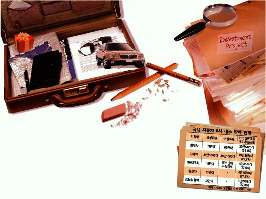 GM대우차와 쌍용차,르노삼성차도 올 1∼5월 내수실적이 각각 4만 3574대,4만 4569대,3만 2758대로 당초 세웠던 연간 목표(GM대우 15만대,쌍용 16만대,르노삼성 12만대) 대비 29.0%,27.9%,27.3%에 불과했다.이에 따라 이들 3사는 올 목표 달성이 현실적으로 힘들 것으로 보고 내수 판매계획을 하향 조정할지 여부를 검토 중이다.