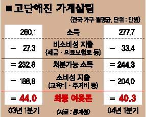 반면 소득은 쥐꼬리만큼 늘어 살림살이가 빡빡해졌다.