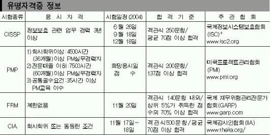 프로젝트 관리 분야에서는 프로젝트관리전문가(PMP) 자격이 최고로 꼽힌다.기업의 프로젝트를 기획하고 총괄 관리하는 전문자격으로 국제공인자격증이다.삼성SDS,LGCNC,한국전력공사 등 국내 대기업에서 인센티브를 줄 정도로 인기다.
