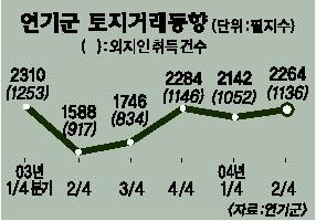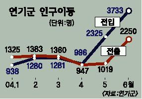 연기군청 주민지원과 윤용수씨는 “최근 전입 인구가 급증한 것은 조치원에서 분양된 대우 푸르지오 아파트(810가구)청약을 노린 일시 전입자가 많았기 때문”으로 분석했다.