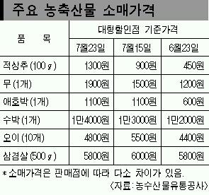 장마가 끝나고 불볕더위가 시작되면서 채소값이 크게 오르고 있다.