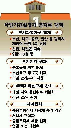 정부가 하반기들어 부동산 규제 완화책을 잇따라 내놓고 있다.이러한 가운데 과연 정부의 ‘부동산 연착륙 대책’이 어느정도 효과를 거둘 수 있을지 관심이 쏠리고 있다.