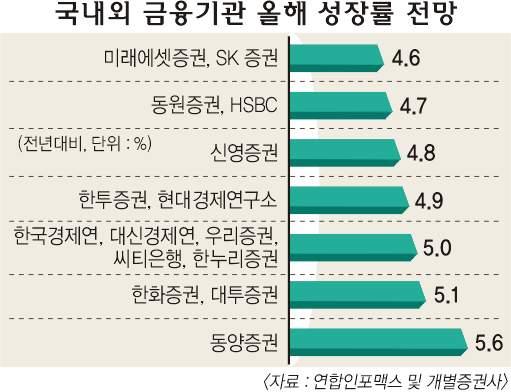 반면 동양종합금융증권은 한국은행 전망(5.2%)보다도 높은 5.6%를 예상했다.