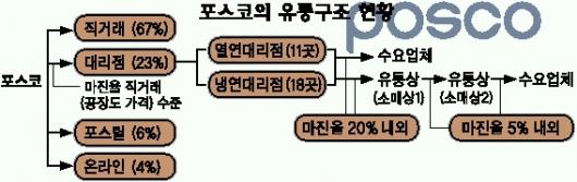 포스코 관계자는 “대리점은 수요업체에 맞춤 서비스를 제공하고 인건비·가공비·재고 보관비 등 핸들링 비용이 추가로 든다.”면서 “가격 결정은 대리점에서 하고 있지만 마진 폭리를 취하지 못하도록 유도하고 있다.”고 말했다.