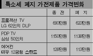 이르면 이달 중순부터 골프채 에어컨 등 24개 품목의 특별소비세가 사실상 완전 폐지된다.이에 따라 에어컨은 5만∼20만원,골프채는 20만∼80만원 가량 싸진다.승용차·휘발유 등 8개 품목의 특소세는 기존대로 유지된다.