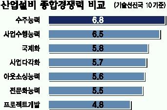 한국 업체들은 1990년대초 이후 15년여동안 각고의 노력 끝에 이 분야에서 경쟁력을 확보했다.특히 석유와 가스 처리 플랜트 건설은 우리가 세계적인 경쟁력을 확보한 분야다.