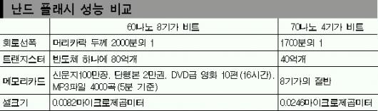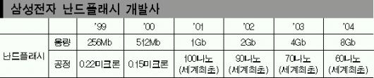 삼성전자가 20일 발표한 플래시메모리,D램 신기술은 지난해까지 11년 연속 지켜온 메모리반도체 세계 1위의 위상을 더욱 공고히 할 것으로 기대된다.같이 발표된 세계 최고속인 667㎒ 모바일 CPU개발 성공은 앞으로 비메모리 분야에서 삼성의 가능성을 엿보게 한다.정부가 추진 중인 ‘10대 성장동력’의 근간이 되는 반도체의 세계 경쟁력만큼은 확보된 셈이다.
