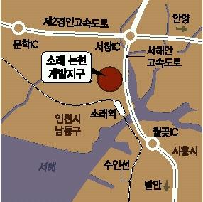 소래논현지구 도시개발사업은 72만 4109평으로 민간업체가 개발하는 도시개발사업으로는 최대 규모다.한화는 이 곳에 1조원 정도를 투입,아파트 1만 1920가구와 단독주택 143가구 등 주택 1만 2066가구를 지어 3만 5000명을 수용할 계획이다.아파트는 2006년 상반기 분양 예정이다.인구밀도는 ㏊당 146명으로 분당(198명)과 일산(176명)보다는 낮다.공원녹지율을 43%로 높여 주거여건이 쾌적한 편이다.소래논현지구는 인천 도심에서 동남쪽으로 10㎞ 정도 떨어져 있으며 서울외곽순환도로와 서해안고속도로를 이용하기 쉽다.