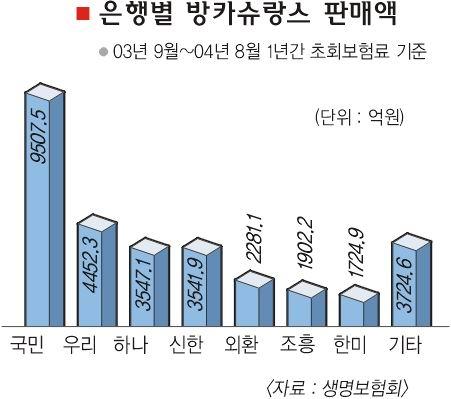 은행들이 대출받으러 온 사람들에게 방카슈랑스(은행원들의 보험판매) 보험을 강매하는 사례가 늘고 있다.가입자들의 볼멘소리가 잇따르자 금융감독 당국이 이를 사실상의 ‘꺾기’(대출때 융자액의 일부를 강제로 예금하게 하는 일)로 보고 단속의 칼을 뽑아들었다.