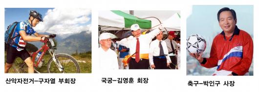 LG전선 구 부회장은 산악자전거,대성그룹글로벌에너지네트웍 김 회장은 국궁,동원F&B 박인구 사장은 축구 예찬론자이다.