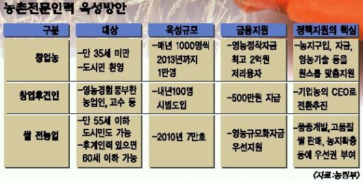 농촌에 인력 구조조정 바람이 거세게 불고 있다.도시의 젊은 인력을 유입시키고,경쟁력 있는 기존 인력은 전문화하는 작업이다.이를 위해 정부는 앞으로 10년 동안 총 6조 5000억원의 예산을 쏟아붓기로 했다.