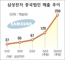 삼성전자 윤종용 부회장은 25일 상하이 과학기술관(SSTM)에서 열린 ‘글로벌 로드쇼’에 참석,“중국내 매출액을 올해 60억달러에서 2010년 250억달러로 늘릴 계획”이라고 밝혔다.