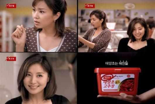 ‘해찬들 시스터즈’ 최명길, 조미령은 태양초 고추장으로 오랫동안 ‘매운 정’을 쌓아왔다. 이번에 두 자매는 슈퍼마켓에 물건을 사러갔다가 유사 태양초 고추장이 너무 많은데 놀란다. 장을 보고 돌아온 이들은 해찬들 태양초 고추장으로 낙지 전골을 해먹으면서 “맛있게 매워야 태양초지!”라고 외친다. 싸이월드 광고에는 아이스크림을 나눠먹는 두 미소녀가 나와 보는 이의 얼굴에서 미소를 자아낸다. 크라운제과의 국희그린샌드 광고에서도 두명의 미소녀가 다정하게 보성 녹차밭을 누빈다.
