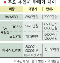 “회사가 책정한 BMW530i의 가격은 8870만원이지만 국내 시장에서의 출혈 경쟁 등으로 7000만원선에서 거래가 이뤄진다.”
