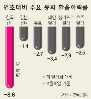 환율하락이 수출기업에게 다소 타격을 주는 반면 수입단가가 낮아지는 효과가 있어 물가안정에 적잖이 도움이 될 것이란 관측이다.