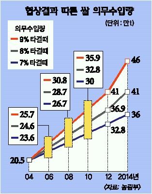 분명한 것은 관세화와 관세화 유예 중 어느 쪽으로 가더라도 국내시장의 추가 개방은 불가피하다는 것이다. 관세화 유예로 가더라도 의무수입 물량이 10년 뒤에는 현재의 두배 안팎으로 늘어나게 되기 때문이다.