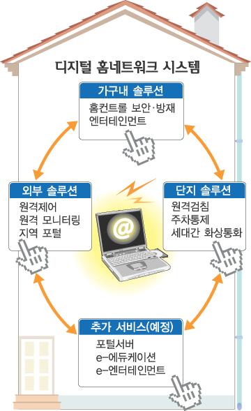 이 정도 수준의 홈네트워크를 설치하는 데 들어간 비용은 가구당 300만원 정도. 주민 배영숙(42)씨는 “2002년 46평짜리를 3억 800만원에 분양받았는데 홈네트워크 덕분인지 1억 5000만∼1억 8000만원 정도 집값이 올랐다.”고 말했다.
