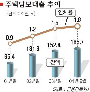 국민은행은 지난 10월 말 현재 주택담보대출 잔액 33조원 중 30%인 10조원 정도가 빌라·연립대출이다. 우리은행도 13조 7000억원의 20%(2조 7000억원) 정도를 빌라·연립대출로 운용하고 있다. 금융감독원과 은행권에 따르면 아파트와 빌라·연립 등 전체 주택담보 대출은 2000년 말 54조 8000억원에서 2001년 말 85조 4000억원으로 급증한 뒤 2002년 말에는 131조원을 넘어섰다.