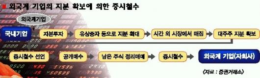 외국계 기업들이 국내 우량기업의 자본인수를 통해 증시에서 철수시키는 이유는 우선 수익성을 독점하기 위한 기업활동으로 분석된다.