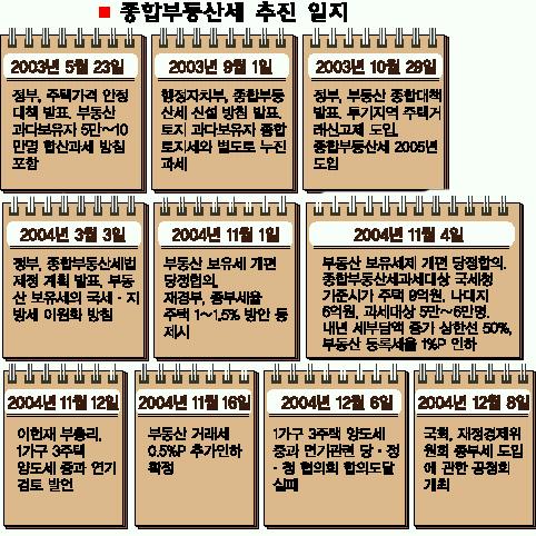 9일 재정경제부와 국회 등에 따르면 국회 재경위는 종부세법안을 상정, 대체토론에 이어 공청회를 개최했으나 한나라당 의원들이 신속한 처리에 강하게 반대하고 있다. 이에 따라 빨라도 내년 초에나 입법이 가능할 것이라는 전망이다.