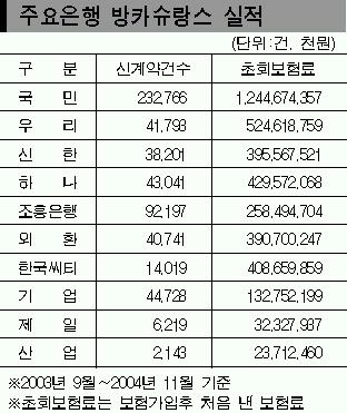 반면 방카슈랑스 판매에서 1·2위를 차지하고 있는 국민은행과 우리은행은 꺾기판매 행위가 거의 없는 것으로 조사됐다. 국민은행 관계자는 “금감원으로부터 불법 방카슈랑스 판매행위를 하지 않은 것으로 통보받았다.”면서 “그러나 판매건수·보험료 등 실적이 가장 많아 꺾기·불완전판매에 대한 오해를 받고 있어 기업금융점포에서 당분간 방카슈랑스 판매를 하지 않기로 했다.”고 말했다.