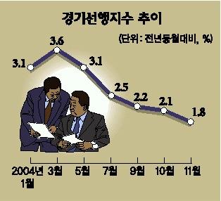 이에 따라 향후 경기전환시기를 예측해 주는 경기선행지수가 8개월째 감소세를 보여 내년 상반기까지는 경기회복을 기대하기 어려울 전망이다. 다만 현재의 경기를 나타내는 경기동행지수 순환변동치는 전달보다 0.1포인트 상승,8개월 만에 오름세로 돌아섰다. 그러나 통계청 관계자는 “한달 움직임을 추세적인 변화로 보기는 힘들다.”고 설명했다.