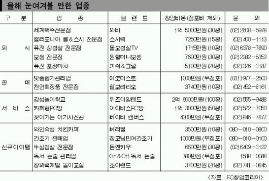 또 불황일수록 수요가 검증된 전통 외식업이나 안정된 수요를 가진 업종 창업도 꾸준할 것으로 보인다.