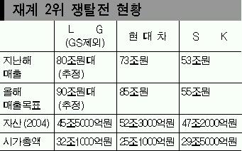 LG측은 부채까지 포함된 자산기준으로 매겨진 재계 서열에는 연연하지 않겠다는 입장이다. 대신 매출이나 시가총액에서만큼은 2위를 내줄 수 없다며 ‘전의’를 불태우고 있다.