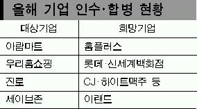 지난해 뉴코아를 인수한 이랜드도 같은 유통회사 세이브존아이앤씨 인수를 적극 추진하고 있다. 앞서 롯데쇼핑은 최근 충북 제천에 있는 할인점 홈마트 2개점을 인수했다.