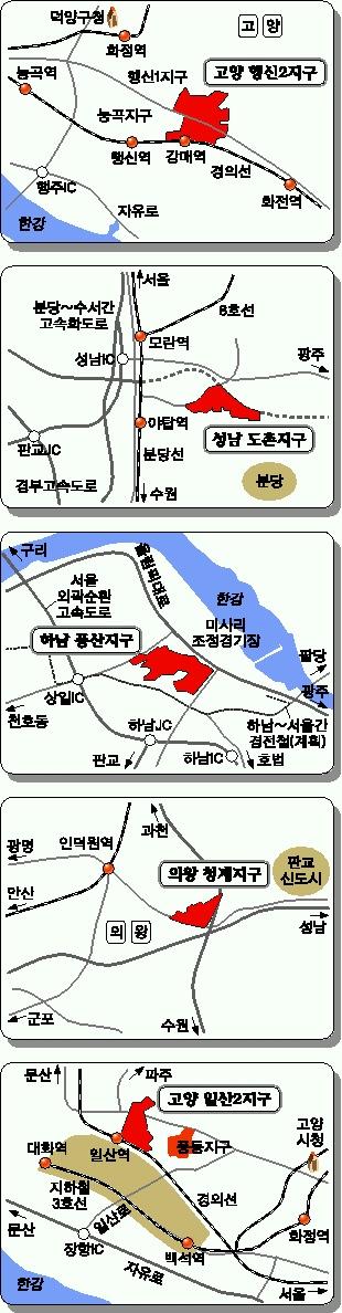 행신2지구, 성남 도촌지구, 하남 풍산지구, 의왕 청계지구 등이 꼽힌다.