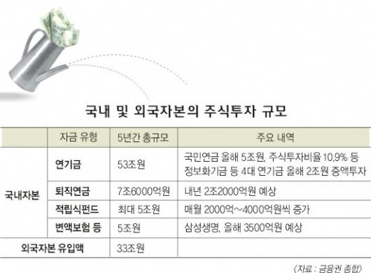 국내에서 외국자본의 영향력이 갈수록 커지고 있는 가운데 70조원에 이르는 대규모 ‘토종자본’이 증권시장으로 흘러들어올 것으로 보인다. 이는 현재 달아오른 증시의 자금수급에 안정감을 보태주면서 소버린 등 외국계 자본의 국내 기업지배 등에 대한 ‘대항마(對抗馬)’ 역할을 할 것으로 기대된다. 동원증권 김세중 애널리스트는 “외국인들은 국내기업 주식의 40% 이상을 보유하고 있으면서 엄청난 영향력을 발휘하고 있다.”면서 “그러나 점차 국내 증시의 투자환경이 바뀌면서 개인은 물론, 기관들의 힘이 매우 커질 것”이라고 전망했다.