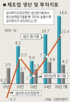 산자부는 20일 ‘외환위기 이후 기업의 재무구조와 투자추이 분석 및 시사점’ 보고서를 통해 2003년 9월 이후 제조업 생산능력 증가율이 생산 증가율을 따라가지 못하는 상황이 이어져 성장잠재력의 심각한 훼손이 우려된다고 밝혔다.