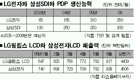 업계에서는 내년 상반기 LG필립스LCD의 파주LCD산업단지 가동과 LG전자의 구미 PDP A3라인이 완전 가동되면 양사의 확실한 비교 우위가 드러날 것으로 보고 있다.