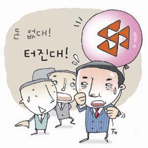 코오롱그룹에 정체불명의 ‘비보‘가 날아온 때는 지난 6일 오후 2시30분쯤. 언론사 기자들과 증권사 펀드매니저들 간에 ‘코오롱자금악화설’이라는 메신저가 급속히 뜨기 시작했다. 전날 주거래은행인 우리은행이 여신한도를 축소하고 있으며, 위험관리에 들어간다는 소문이 퍼져 나간 것이다. 이 메신저가 10여분 만에 금융기관들에 퍼지면서 주가가 하한가로 곤두박질쳤다.
