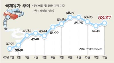 올해 국내 경기회복의 최대 복병 가운데 하나가 유가다. 지난해에는 두바이유 현물 기준으로 유가가 전년보다 46.3%나 급등하면서 경제에 큰 부담을 줬다.