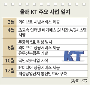 남 사장은 또 긴 호흡의 필요성을 역설했다.10년 후의 미래를 내다보고 투자하는 ‘본질 경영’이 요체다. 이를 위해 더욱 진화된 네트워크를 구축하고 이에 맞는 콘텐츠와 서비스를 개발하는 것은 물론 이를 운영할 전문인력도 양성할 방침이다. 이러한 성장 모멘텀이 가시화되면 올해 KT는 한 단계 도약할 수 있는 전환점을 맞게 될 것으로 자신했다.