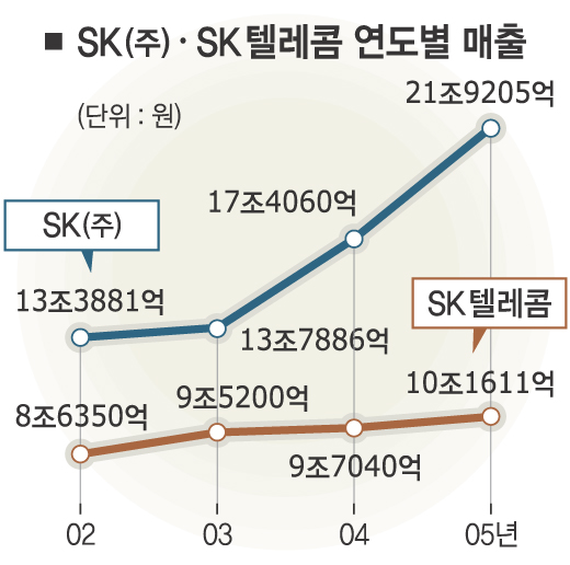 SK그룹의 ‘쌍두마차’인 SK㈜와 SK텔레콤이 지난해 최고의 경영 성적을 올렸다. 양사가 각각 매출 20조,10조시대를 새롭게 열며 동종업계의 실적 최고 기록을 갈아치웠다.