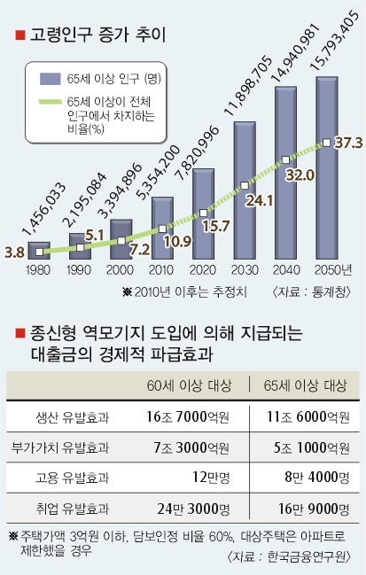우리나라는 오는 2017년이면 65세 이상 노인인구가 유년인구(0∼14세)를 추월, 본격적인 고령화 사회에 접어들 것으로 예상된다. 하지만 현재 노후 소득보장 대책은 국민연금 정도밖에 없고, 국민연금 수령액만으로 편안한 노후를 보내기는 어렵다. 이에 정부는 ‘종신형 역(逆)모기지’ 제도가 노인들의 소득 보장 문제를 해결해줄 방안의 하나로 보고, 종합적인 종신형 역모기지 지원 대책을 마련하고 있다.