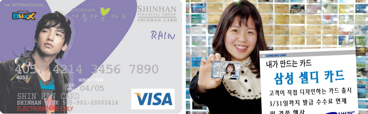 9일 신한카드는 최근 미국 뉴욕 메디슨 스퀘어 가든에서 공연해 화제가 됐던 가수 ‘비’의 팬클럽 회원들을 상대로 한 ‘신한아름다운비카드’도 내놓았다.