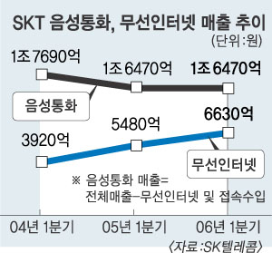 무선인터넷 매출은 6632억원(전년 동기 대비 21.1% 증가)으로 전체 매출의 28.7%를 차지했다. 지난해 4분기 무선인터넷 매출은 6615억원이었다. 모바일 싸이월드, 멜론 등 동영상 콘텐츠 서비스가 큰 힘이 됐다. 하성민 CFO(재무담당임원) 전무는 “동영상 서비스인 HSPDA(고속무선전송기술), 와이브로 등 신규 서비스가 본격화되면 무선인터넷 분야에서 더욱 큰 매출 신장이 있을 것”이라고 말했다.
