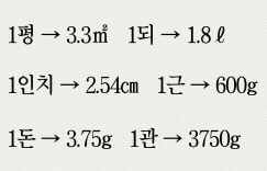 또한 1인치는 2.54㎝,1자는 30.30㎝,100야드는 91.4m,1마일은 1.6㎞가 맞다.1정보는 9917㎡,1에이커는 4046㎡로 써야 하며 1되는 1.8ℓ,1갤런은 3.78ℓ이다.1근은 600g으로 통일시키고 1관은 3750g,1파운드는 453g,1돈은 3.75g이 올바른 표기이다.