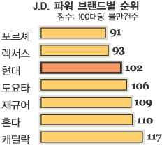 제이디 파워의 신차 품질조사는 신차 구입 후 3개월이 지난 차량의 고객들을 대상으로 엔진, 변속기, 승차감, 스타일, 편의성, 디자인 등을 조사해 발표된다. 점수가 낮을수록 높은 품질만족도를 나타낸다. 현대차는 2000년 37개사 중 34위로 ‘꼴찌’ 수준이었지만 이후 끊임없는 품질 개선으로 2004년 도요타(8위)를 제치고 7위에 올랐다. 지난해 10위로 주춤했지만 이번에 3위로 치고 올라오면서 세계 자동차업계를 다시 한번 놀라게 했다.