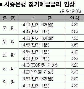 한국은행 금융통화위원회(금통위)가 8일 콜금리(금융기관간 초단기금리)를 연 4.25%로 0.25%포인트 올렸다. 콜금리 인상은 지난 2월 이후 4개월 만이다. 이에 따라 우리은행이 오는 12일부터 예금금리를 0.1∼0.2%포인트 올리기로 하는 등 시중은행들도 발빠르게 금리인상에 나섰다. 예금금리에 이어 대출금리도 곧 오를 것으로 보여 빚을 내 집을 장만한 서민들의 이자부담도 커질 수밖에 없다.