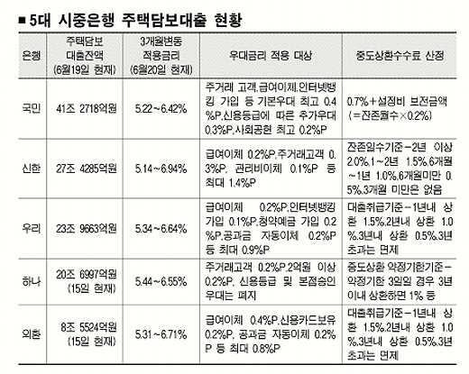 반면 국민은행과 하나은행은 CD금리 변동을 기계적으로 적용하지 않고, 자체적으로 정한 기준금리를 바탕으로 대출금리를 변동시킨다.1주일마다 주택담보대출 금리를 고시하는 국민은행의 경우 최고금리를 기준금리로 표시하고, 각종 할인 혜택을 차감하는 방식으로 대출자가 내야 할 금리를 재산정한다.